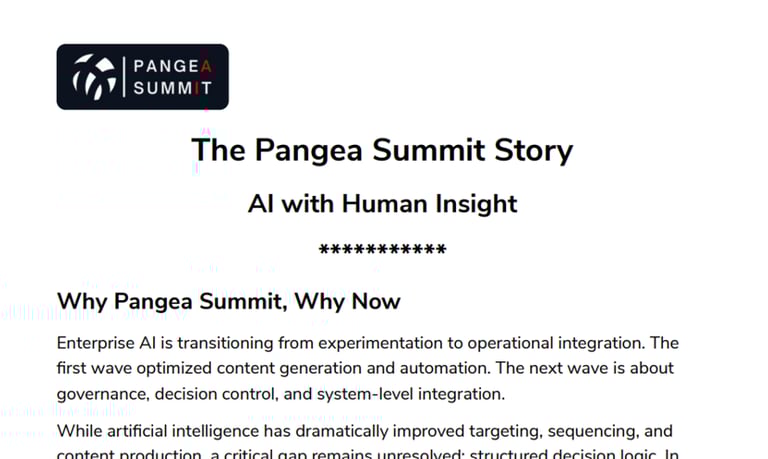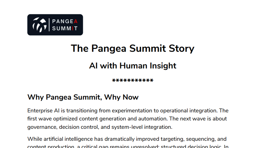Pangea Summit’s thesis is that the next layer of value in GTM will not come only from doing more outreach faster, but from governing meaning before execution: relevance, timing, context, compliance, and expert-grade decision support.